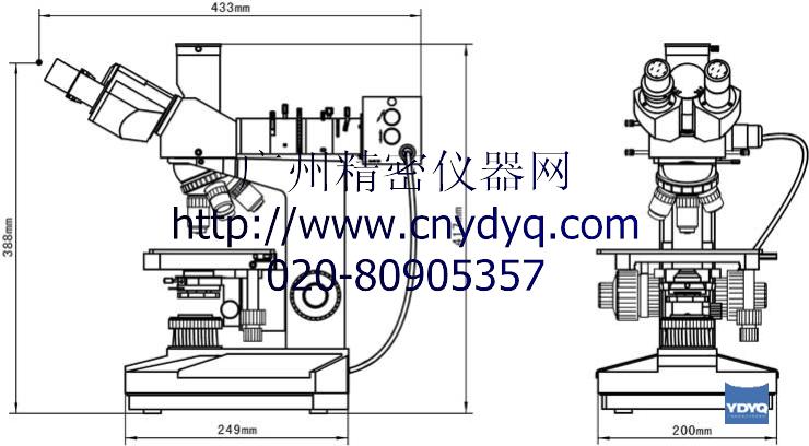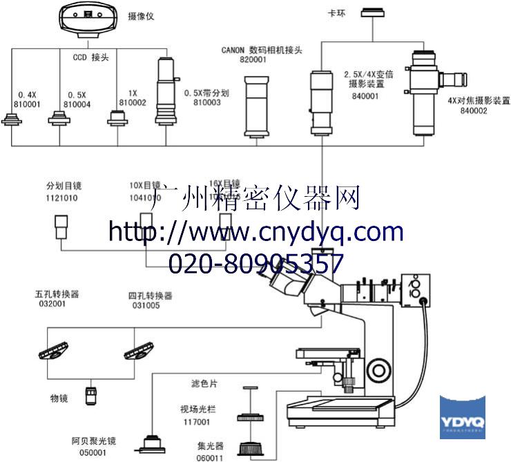 落射照明器带视场光栏、孔径光栏、起偏振片,(黄,蓝,绿)滤色片和磨砂玻璃 | ||
