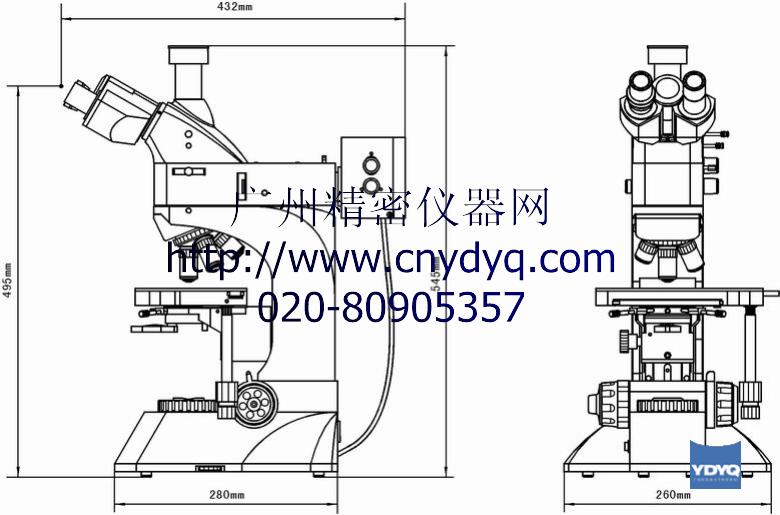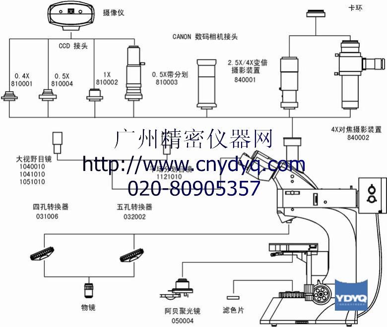 落射照明器带视场光栏、孔径光栏、起偏振片,(黄,蓝,绿)滤色片和磨砂玻璃 | |