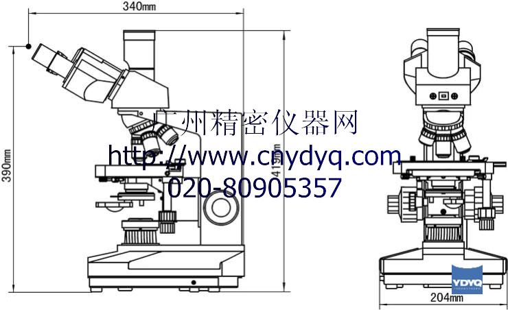 ▲ 采用柯勒照明方式,6V 20W卤素灯照明,亮度可调.